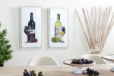 Harper & Willow Large Red Wine and White Wine Metal Wall Art in White Wood Frames, 17 in. x 33 in., 2 pc.