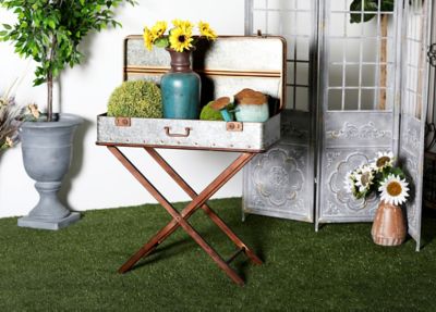 Harper & Willow Metal Suitcase Style Accent Table, Gray
