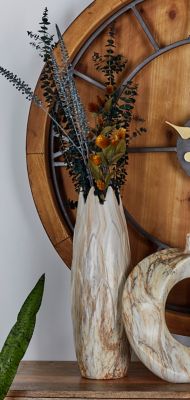 Harper & Willow 7 in. x 21 in. Contemporary-Style Large Cylinder Beige and Coral Marble Ceramic Vase with Jagged Mouth