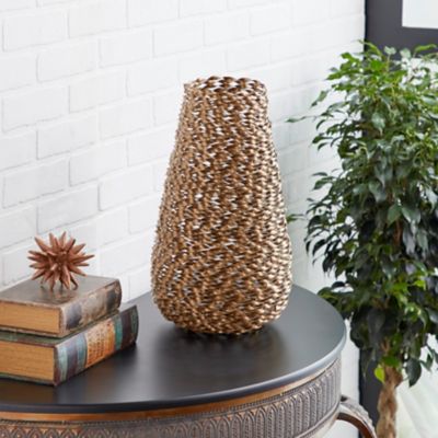 Harper & Willow Modern Style Extra-Large Round Twisted Metal Vase, 9 in. x 18 in., Gold
