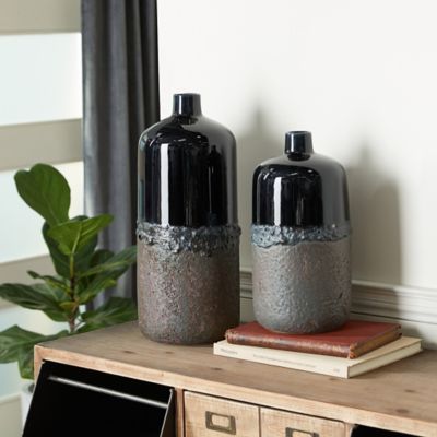 Harper & Willow Ceramic Rustic Vase Set, Black, 2 pc.