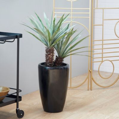 Harper & Willow 37 in. Artificial Green Dracaena Plant with Realistic Leaves in Black Fiberglass Pot