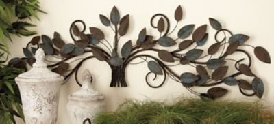 Harper & Willow Blue Metal Traditional Floral Wall Decor, 51 in. x 16 in.