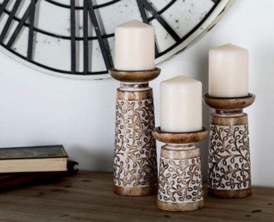 Harper & Willow Assorted Mango Wood Natural Candle Holders, Mocha Brown, 3-Pack