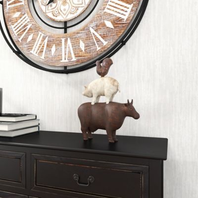 Harper & Willow Polystone Stacked Farm Animals Sculpture, 11 in. x 3 in. x 14 in., Brown