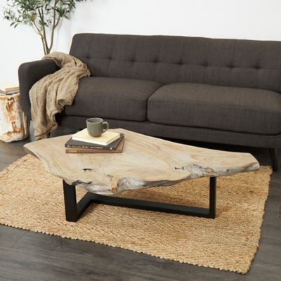 Harper & Willow Brown Wood Handmade Live Edge Wood Slab Coffee Table with Black T Stand Base, 50 in. x 32 in. x 15 in.