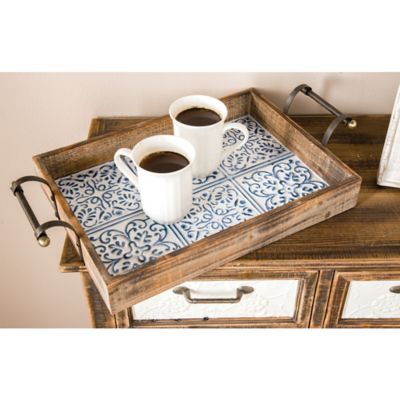 Harper & Willow 2 pc. Wood Farmhouse Tray Set, Assorted, Brown