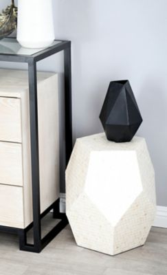 Harper & Willow Mussel Shells and Wood Contemporary Accent Table, Cream