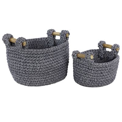 Harper & Willow Large Round Mesh and Cotton Rope Storage Baskets with Teak Wood Handles, 20 x 13 in. and x 11 in., 2 pc.