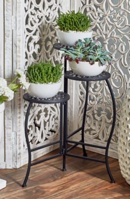 Harper & Willow 3-Tier Black Metal Indoor/Outdoor Floral Plant Stand, 20 in. x 15 in. x 24 in.