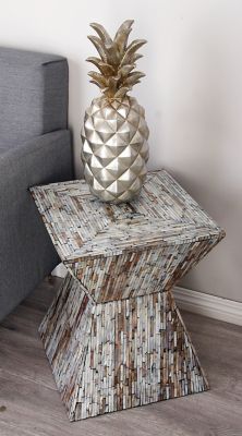 Harper & Willow Multi Mussel Shells and Wood Handmade Contemporary Accent Table