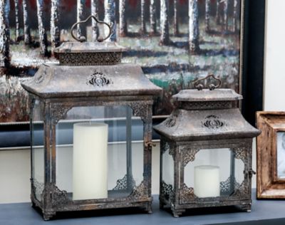 Harper & Willow Rustic Iron & Glass Rectangular Candle Lanterns, 18 x 9 x 4 in., 14 x 7 x 11 in., 11.2 lb., Set of 2, 52915