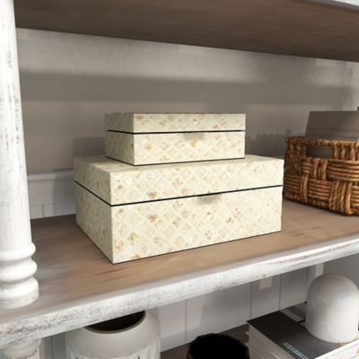 Harper & Willow Cream Mother of Pearl Handmade Box with Hinged Lid Set, Assorted, 2 pc.