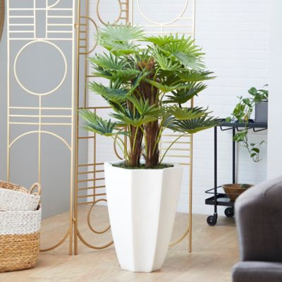 Harper & Willow 54 in. Artificial Green Majesty Palm Plant with Realistic Leaves in White Fiberglass Pot