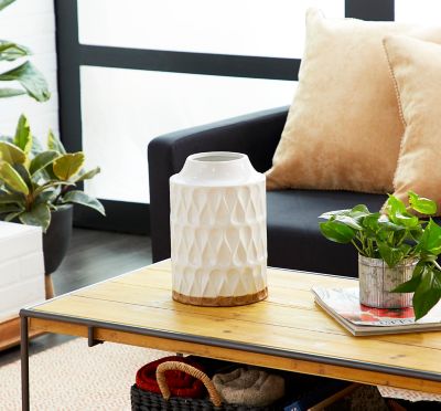 Harper & Willow White Porcelain Contemporary Vase, 8 in. x 8 in. x 12 in.