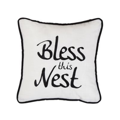 HiEnd Accents Bless This Nest in. Embroidery Throw Pillow, 18 in. x 18 in.
