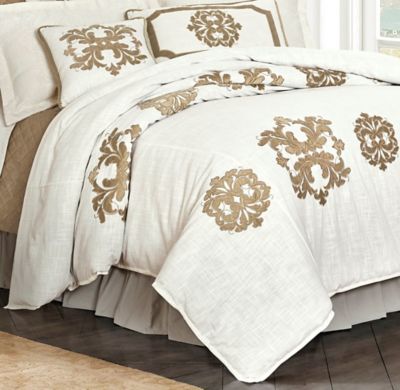 HiEnd Accents Linen Duvet with Velvet Embroidery, Super Queen