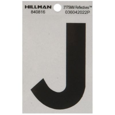 Hillman 3 in. Mylar Reflective Adhesive House Letter J, Black/Silver