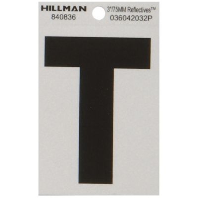 Hillman 3 in. Mylar Reflective Adhesive House Letter T, Black/Silver