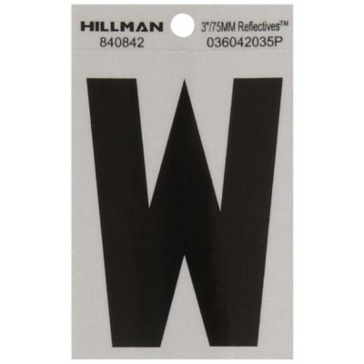 Hillman 3 in. Mylar Reflective Adhesive House Letter W, Black/Silver