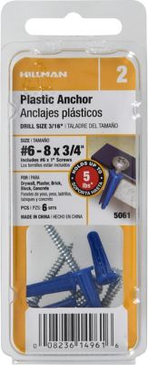 Hillman 5-30 lb. #6-8 x 3/4 in. Blue Conical Plastic Anchors, 6-Pack