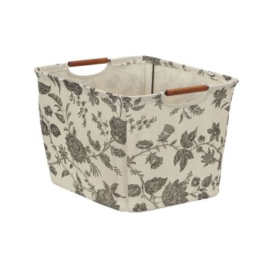 Household Essentials Medium Black/Cream Tapered Storage Bin with Wood Handles, 11 in. x 16 in. x 13 in.