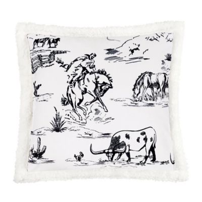 Indigo Hill by HiEnd Accents Ranch Life Western Toile Campfire Sherpa Pillow, 18 in. x 18 in.