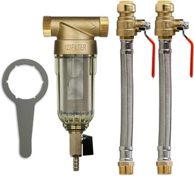 iSpring Reusable Spin Down Sediment Water Filter with Siliphos and Push Fit Ball Valve