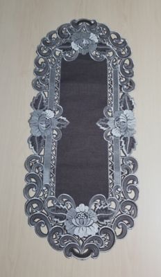 Jiallo Cocoa Linen Embroidered Cutwork Rectangular Table Runner, 16 x 36 in. Table Linen Decor