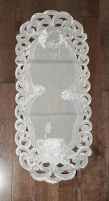 Jiallo Silver Rose Embroidered Cutwork Rectangular Table Runner, 16 x 36 in. Table Linen Decor