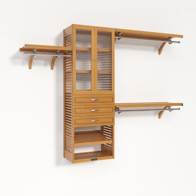 John Louis Home Solid Wood Walk-In Closet Organizer with 3-Drawers and Glass Doors
