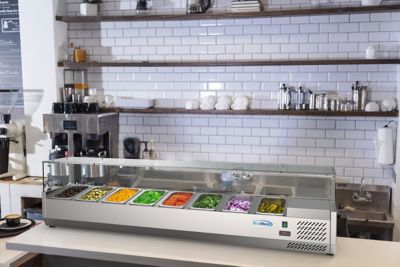 KoolMore 71 in. Eight Pan Refrigerated Countertop Condiment Prep Station, SCDC-8P-SG