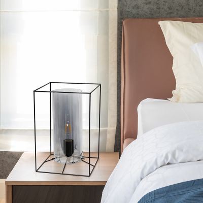 Lalia Home Framed Black Table Lamp with Smokey Cylinder Glass Shade, Large
