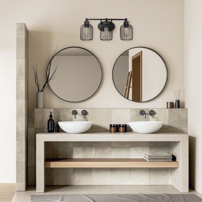 Lalia Home Ironhouse Three Light Industrial Decorative Cage Vanity Wall Mounted Fixture