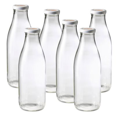 Le Parfait 1L French Glass Preserving Milk Bottles with 48 mm Printed Logo Metal Twist Caps, 6 ct.