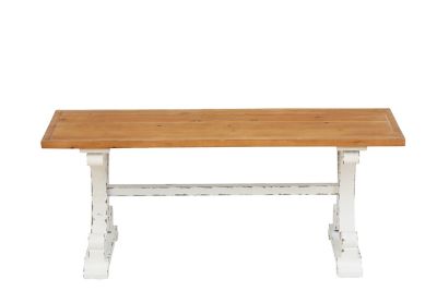LuxenHome Rectangular Farmhouse Wood Entry Coffee Table/Bench, 45 in., White/Natural
