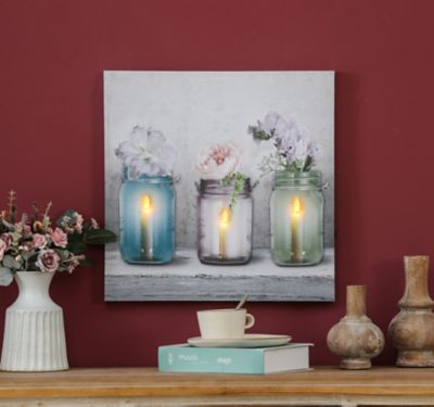 LuxenHome Candle Flower Jars Lighted Canvas Print