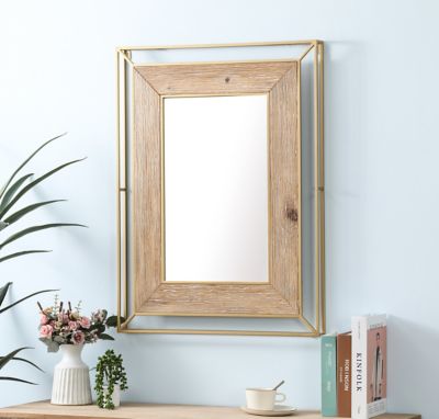 LuxenHome Gold Metal and Natural Wood Rectangular Frame Accent Wall Mirror, WHA1504