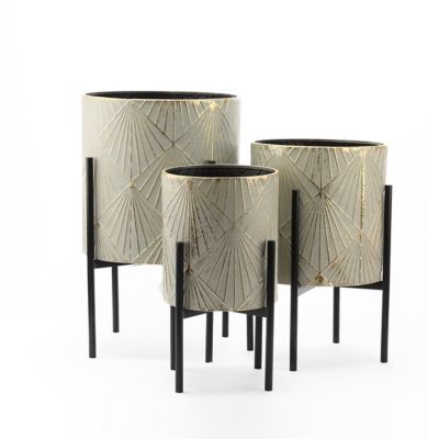 LuxenHome Assorted Metal Cachepot Planters with Stands, Gray/Gold/Black, 3 pk.