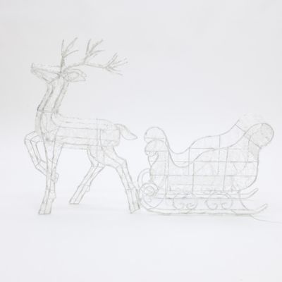 LuxenHome 2-Piece Lighted Reindeer and Sleigh Christmas Yard Decoration, Outdoor Holiday Set with Timer