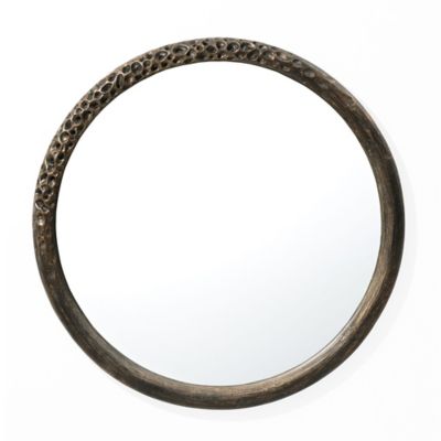 LuxenHome 32 in Round Brown Crater MgO Frame Wall Mirror
