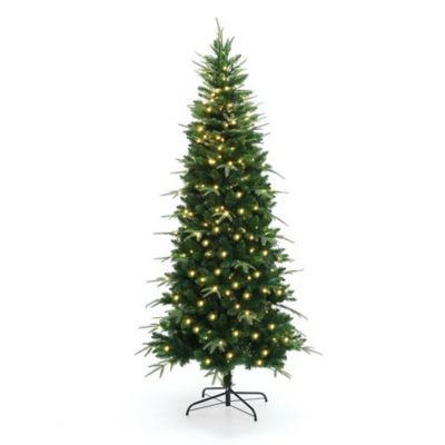 LuxenHome 6 ft. Pre-Lit Green Slim Artificial Christmas Tree with 8 Light Functions