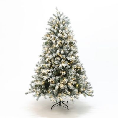 LuxenHome 6.5 ft. Pre-Lit Snow Flocked Full Fir Artificial Christmas Tree with 8 Light Functions