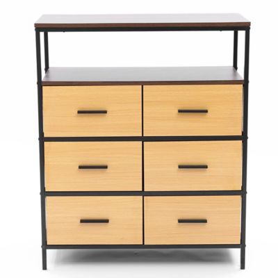LuxenHome Black and Brown Manufactured Wood 6-Drawer 1-Shelf Accent Chest