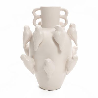 LuxenHome Classic White Ceramic Modern Birds 14.4 in Tall Vase