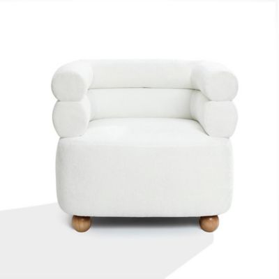 LuxenHome Modern Upholstered Ivory Barrel Accent Chair with Wood Ball Legs
