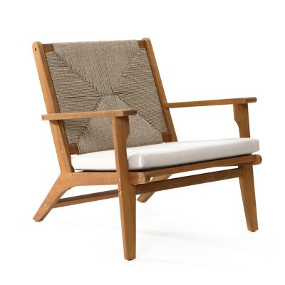 LuxenHome Outdoor Acacia Wood Deck Chair with Seat Cushion