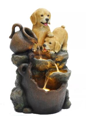 LuxenHome Puppy Friends Farmhouse Resin Outdoor Fountain with Lights, WHF1952