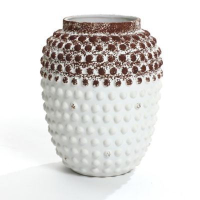 LuxenHome Vintage White and Brown Beaded 12in Tall Urn Vase