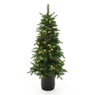 LuxenHome4.5 ft. Pre-Lit Green Full Fir Potted Artificial Christmas Tree